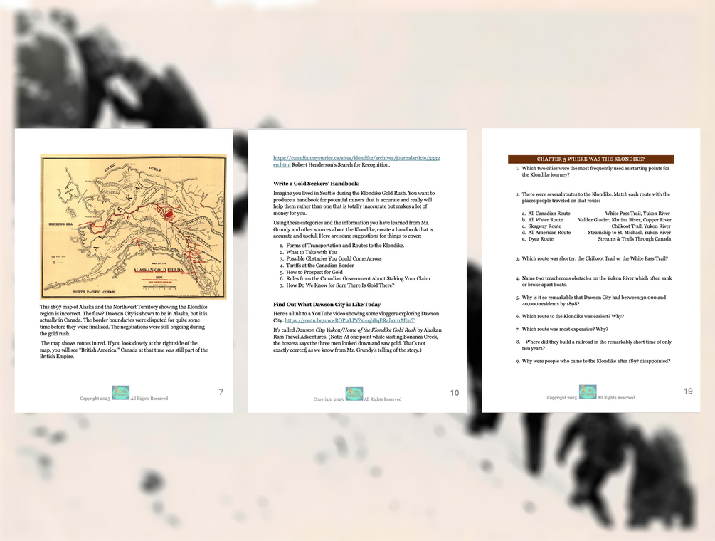 This activities guide is meant to accompany the Klondike Gold Rush: Three Men That Changed the World video. Included in the guide are suggested activities, maps with activities, questions for each of the nine chapters of the video, and an answer key.